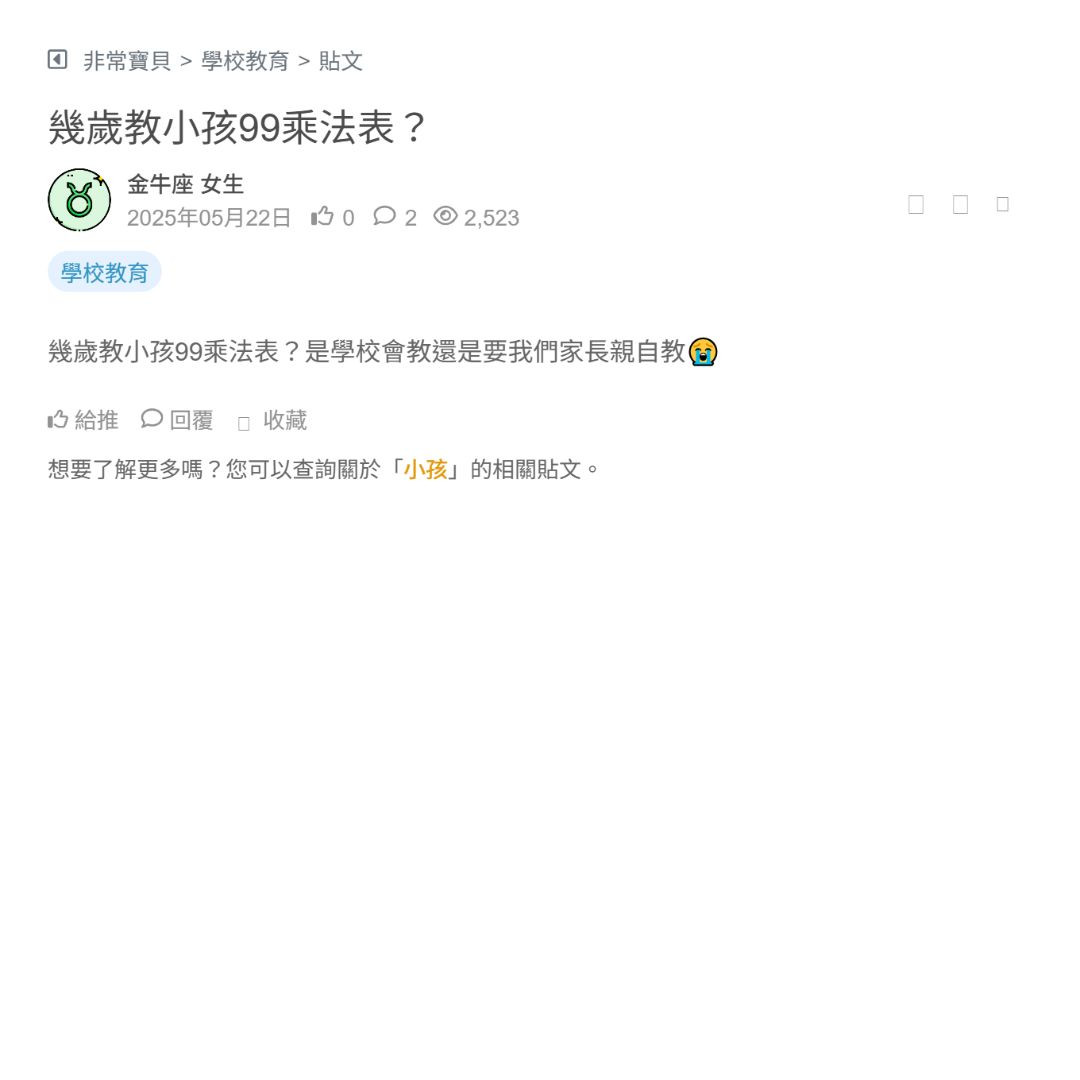 幾歲教小孩99乘法表?是學校會教還是要我們家長親自教😭