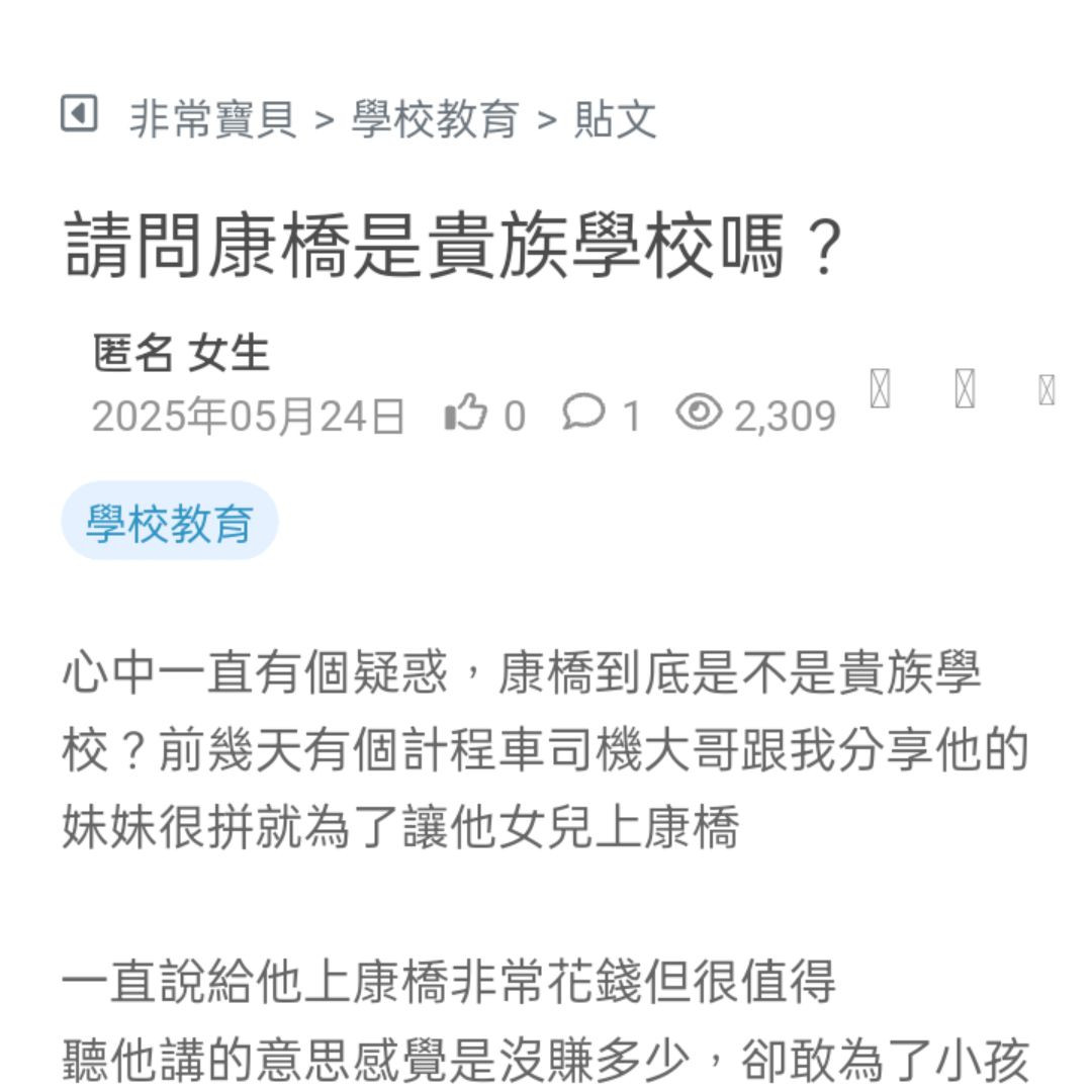 心中一直有個疑惑,康橋到底是不是貴族學校?前幾天有個計程車司機大哥跟我分享他的妹妹很拼就為了讓他女兒上康橋
