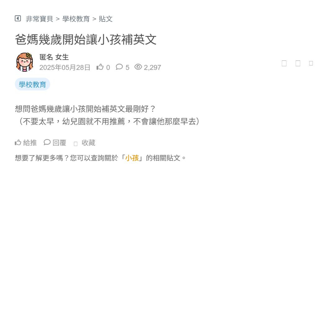 國小一年級需要補英文嗎? 這年紀好像什麼都不懂,各位家長會在這時期開始讓小孩接觸英文嗎 會不會太早 看更多