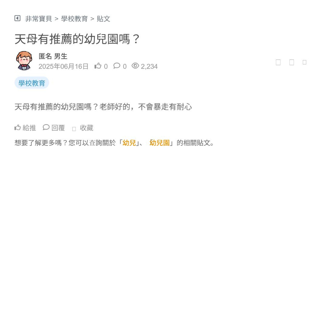 天母有推薦的幼兒園嗎?老師好的,不會暴走有耐心