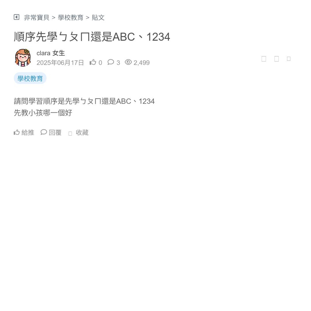 請問學習順序是先學ㄅㄆㄇ還是ABC、1234