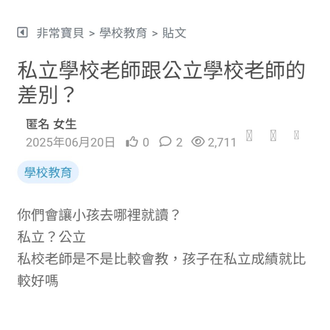 最近霸凌案一直發生 跟爸媽聊到私立學校跟公立學校的問題 想知道唸私校的小孩是不是比較安全 不會有89 公立學校是不是保障比較少? 升學壞境也不好呢? 看更多