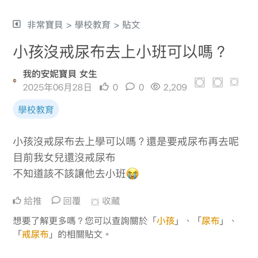 請問大家小孩什麼時候可以戒尿布 我的是男寶 是等他可以站著尿尿的時候嗎? 看更多