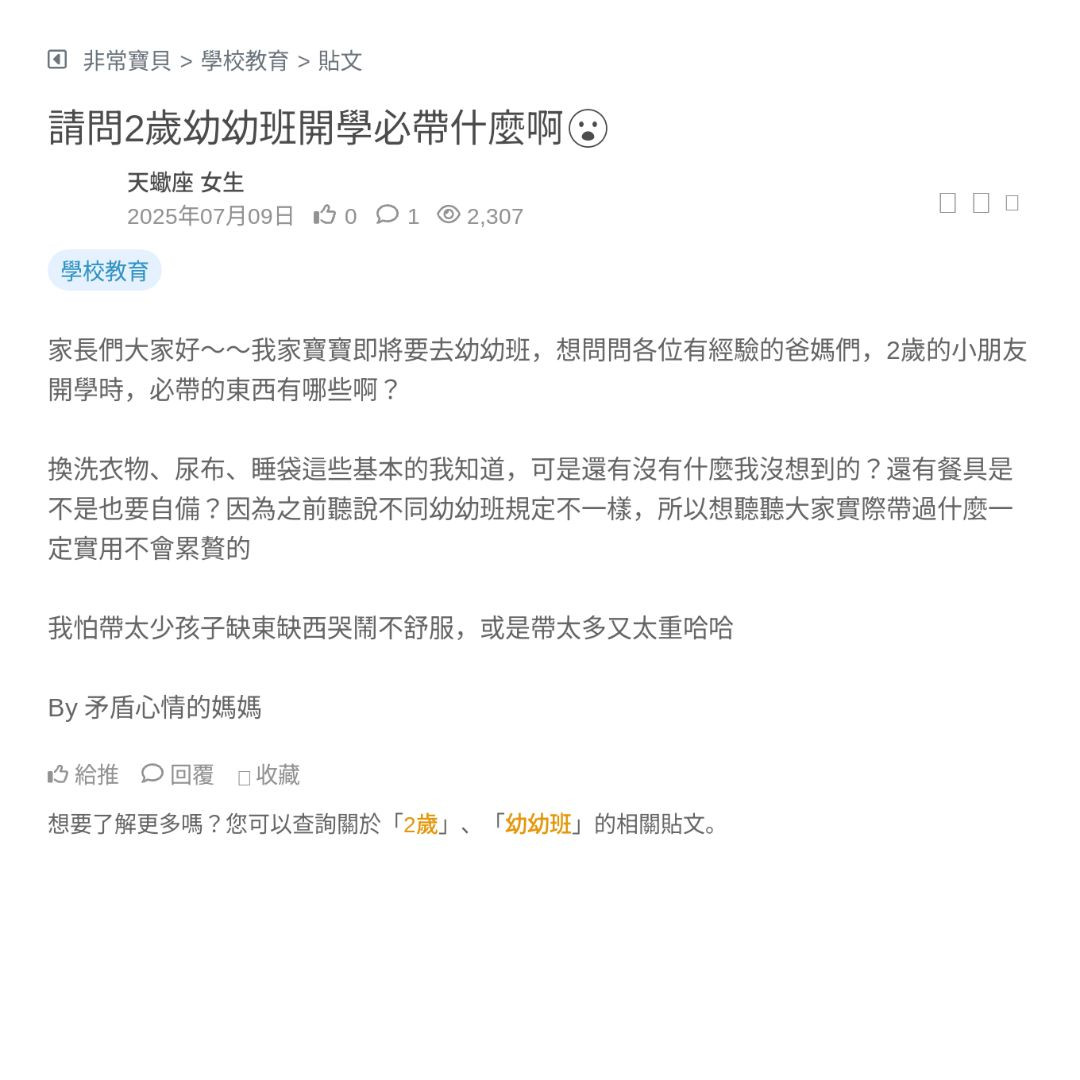 小班去還是2歲幼幼班 好難抉擇喔 一定要小班嗎 身邊的人有支持幼班的也有小班再去的 各位媽媽的想法呢 看更多
