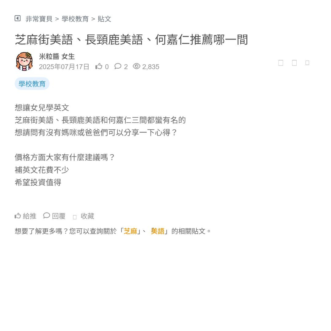 芝麻街美語、長頸鹿美語、何嘉仁推薦哪一間