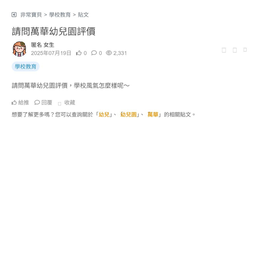 請問萬華幼兒園評價,學校風氣怎麼樣呢~