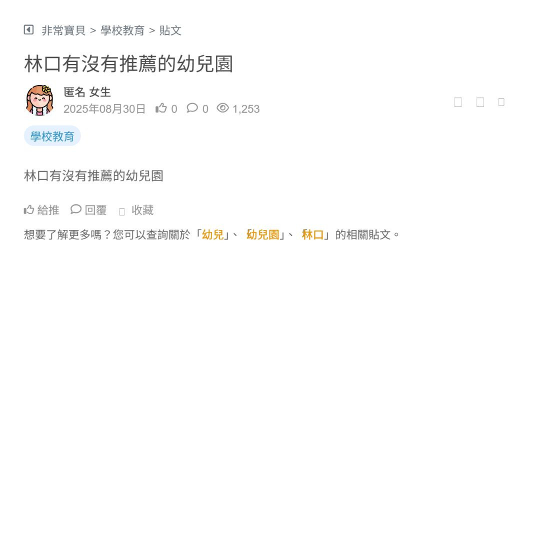 請大家推薦林口不錯的私立幼稚園 感謝!! 看更多