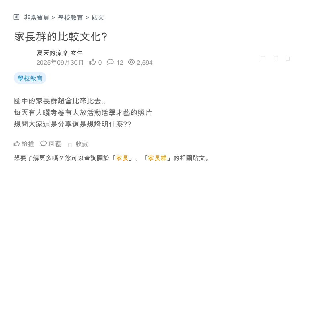 家長群本來是分享孩子近況的地方,被幾個愛比成績、狂曬活動照和私訊問資源的人搞成比賽,真的讓人超無言