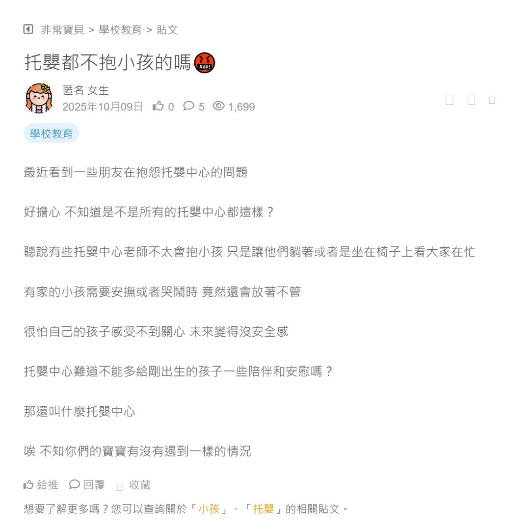 最近看到一些朋友在抱怨托嬰中心的問題