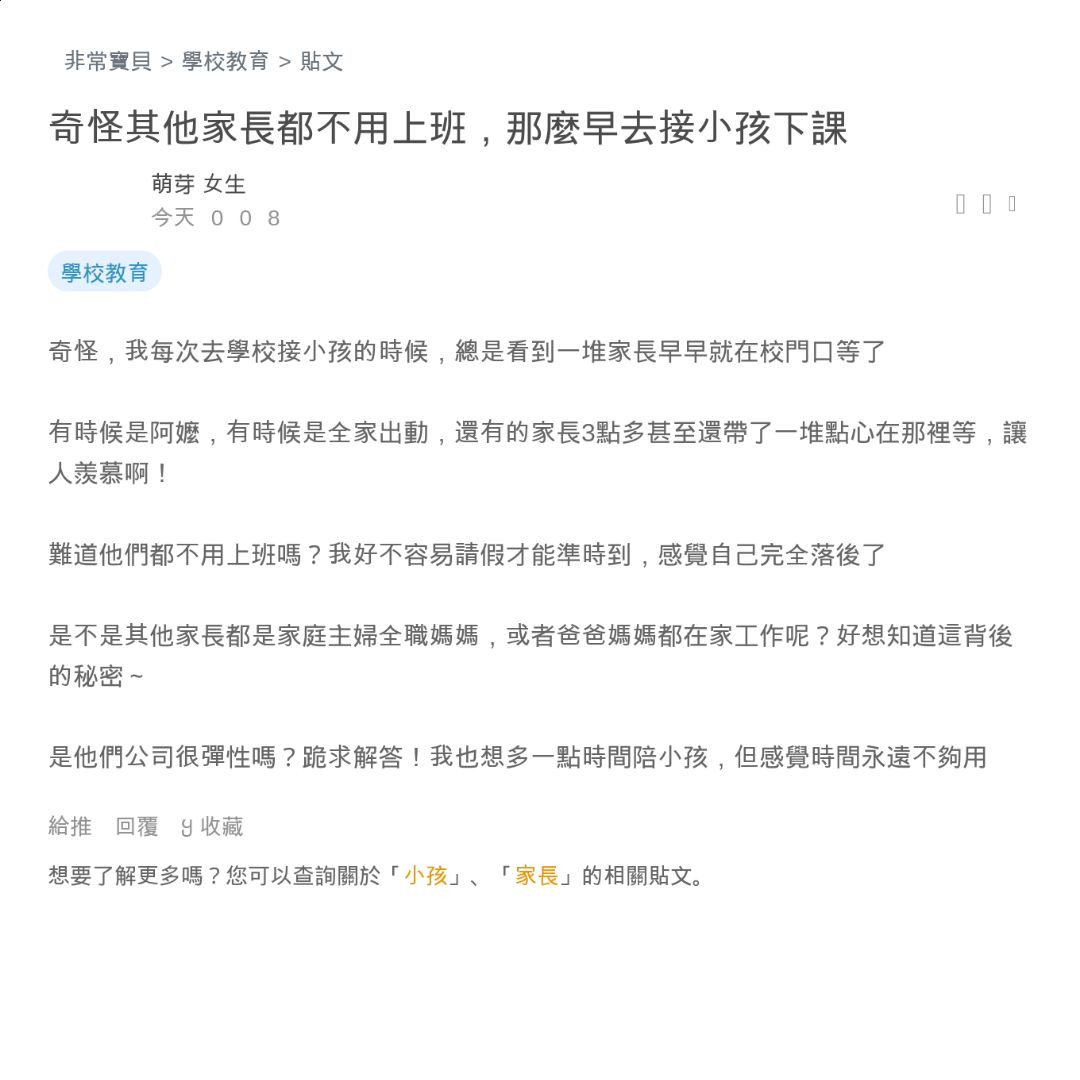 奇怪其他家長都不用上班,那麼早去接小孩下課