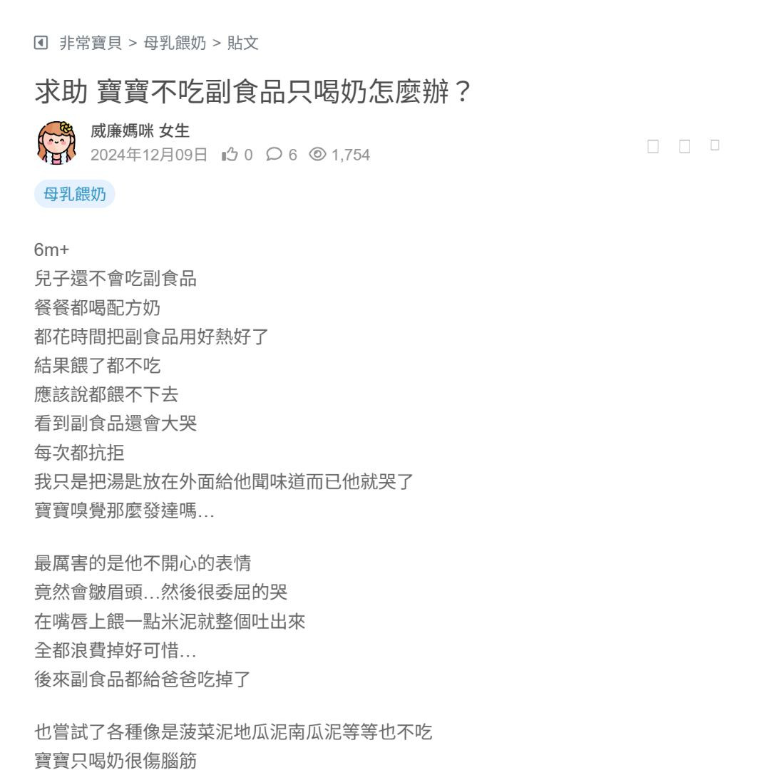 求助 寶寶不吃副食品只喝奶怎麼辦?