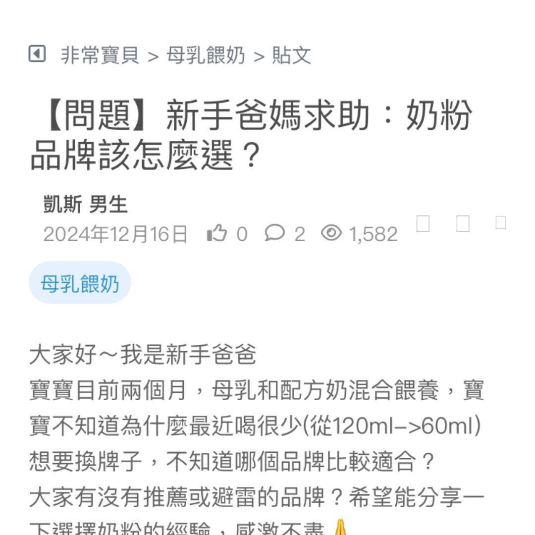買了貴的奶粉結果寶寶直接拒喝 是口感問題?還是奶嘴瓶的奶頭不對 感謝 看更多