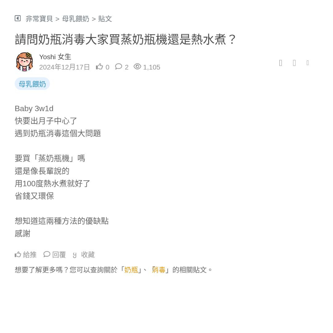 請問奶瓶消毒大家買蒸奶瓶機還是熱水煮?