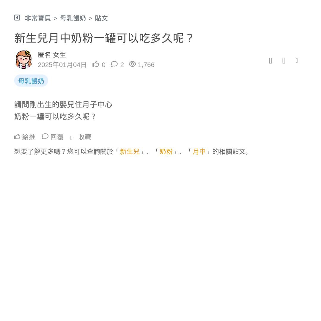 寶寶目前2m個月 我純母奶親餵但打算開始混配方奶 目前就是很怕換奶不適應 各位媽咪們有沒有推薦2個月寶寶的換奶應該喝什麼~ 看更多