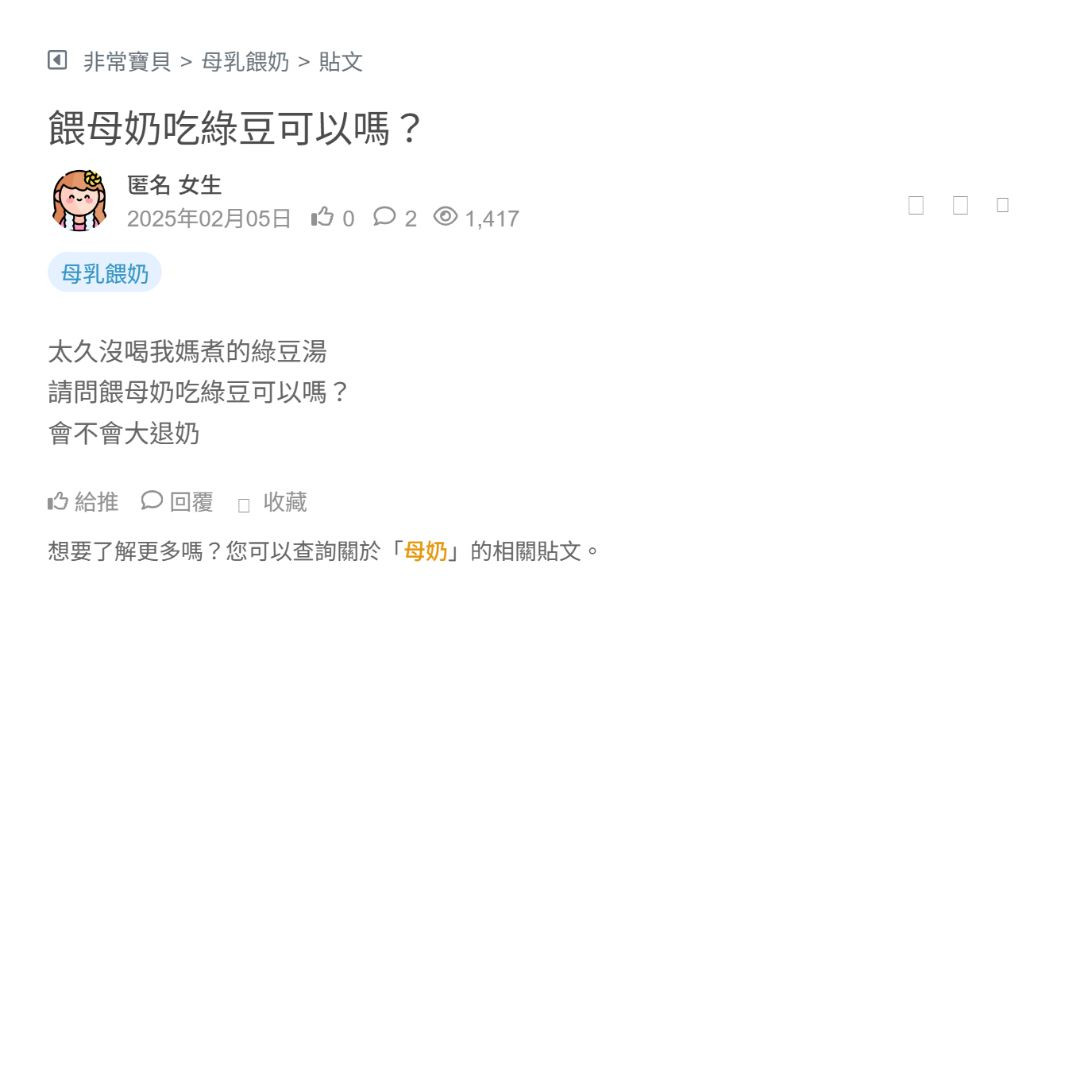 請問餵母奶吃綠豆可以嗎?