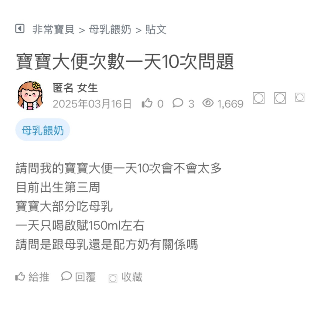 請問有7m寶寶的家長 寶寶一天大便幾次? 目前我兒子大約2天才大一次 是不是便秘? 看更多