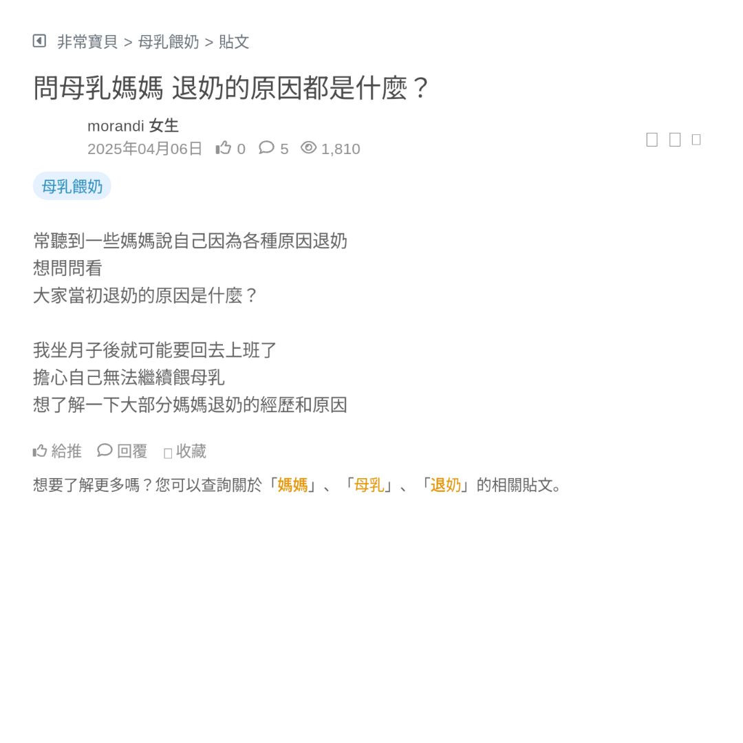 寶寶一天一天吸 好像沒有盡頭 有幾天又吸大 超想快速退奶的啦⋯⋯ 大家有什麼秘方嗎 看更多