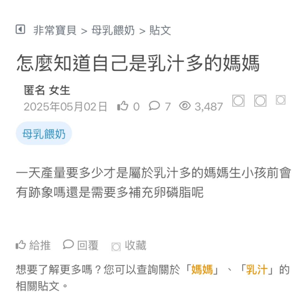 想追奶 少奶奶的我 奶量一直衝不上去 卡在30cc 最多也才40cc 有什麼好方法可以提升奶量的嗎 看更多