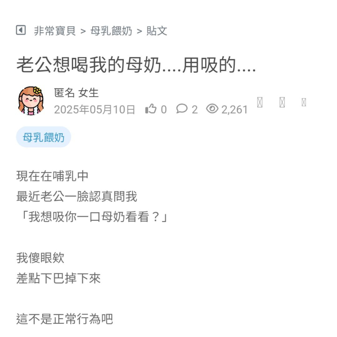 我朋友是一位護理師 她告訴我很多媽媽不想餵母奶 但他們只是因為「不想」餵奶 那些媽媽明明有時間而且不用工作 也有後援可以幫忙 這讓我也開始思考 為什麼有...
