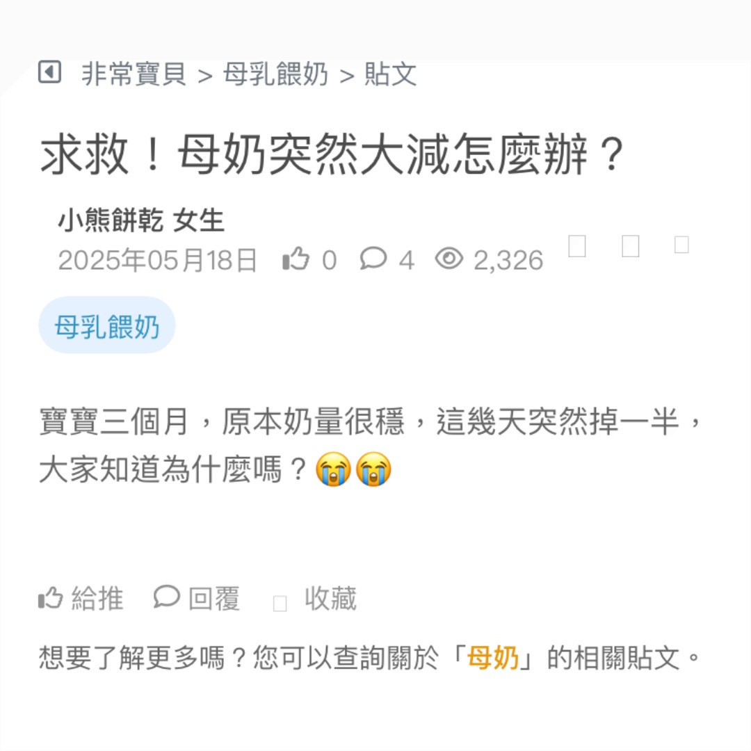 身體太累也會,我每次只要少睡熬夜或情緒不好,奶量就直接砍半😵💫
