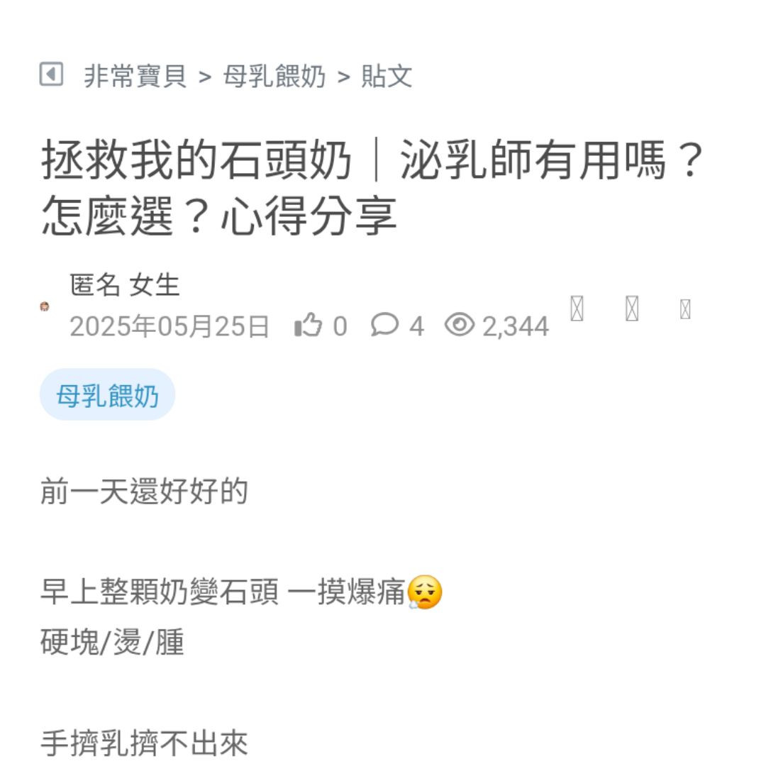 早上整顆奶變石頭 一摸爆痛😮💨