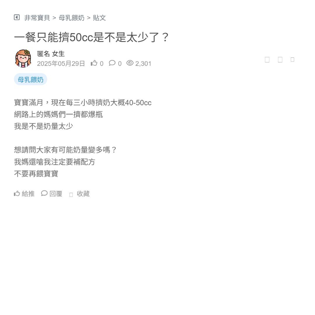 母奶卡關中…目前大概一餐只能擠出 40ml,超挫折,到底怎麼追奶成功的?