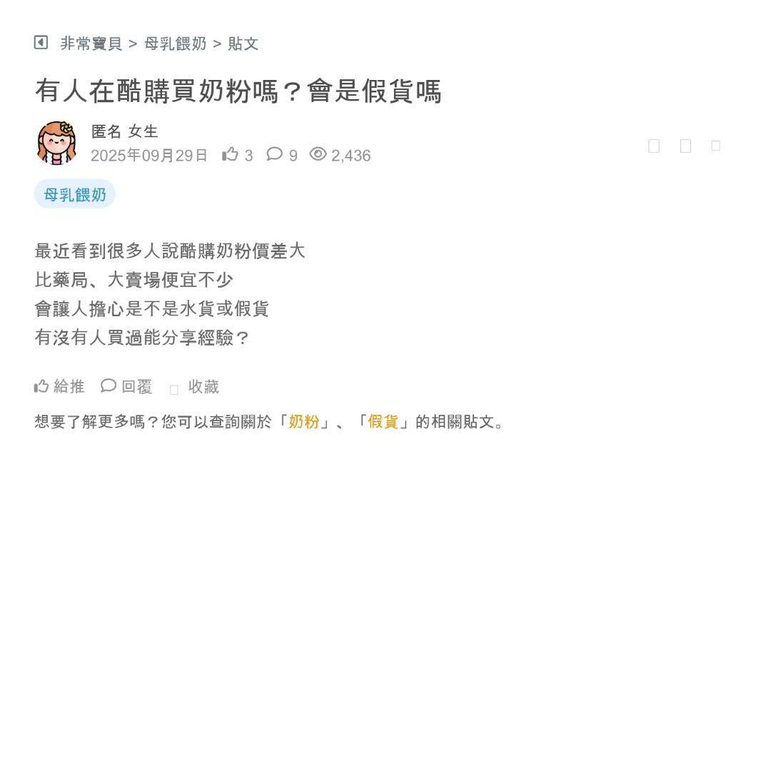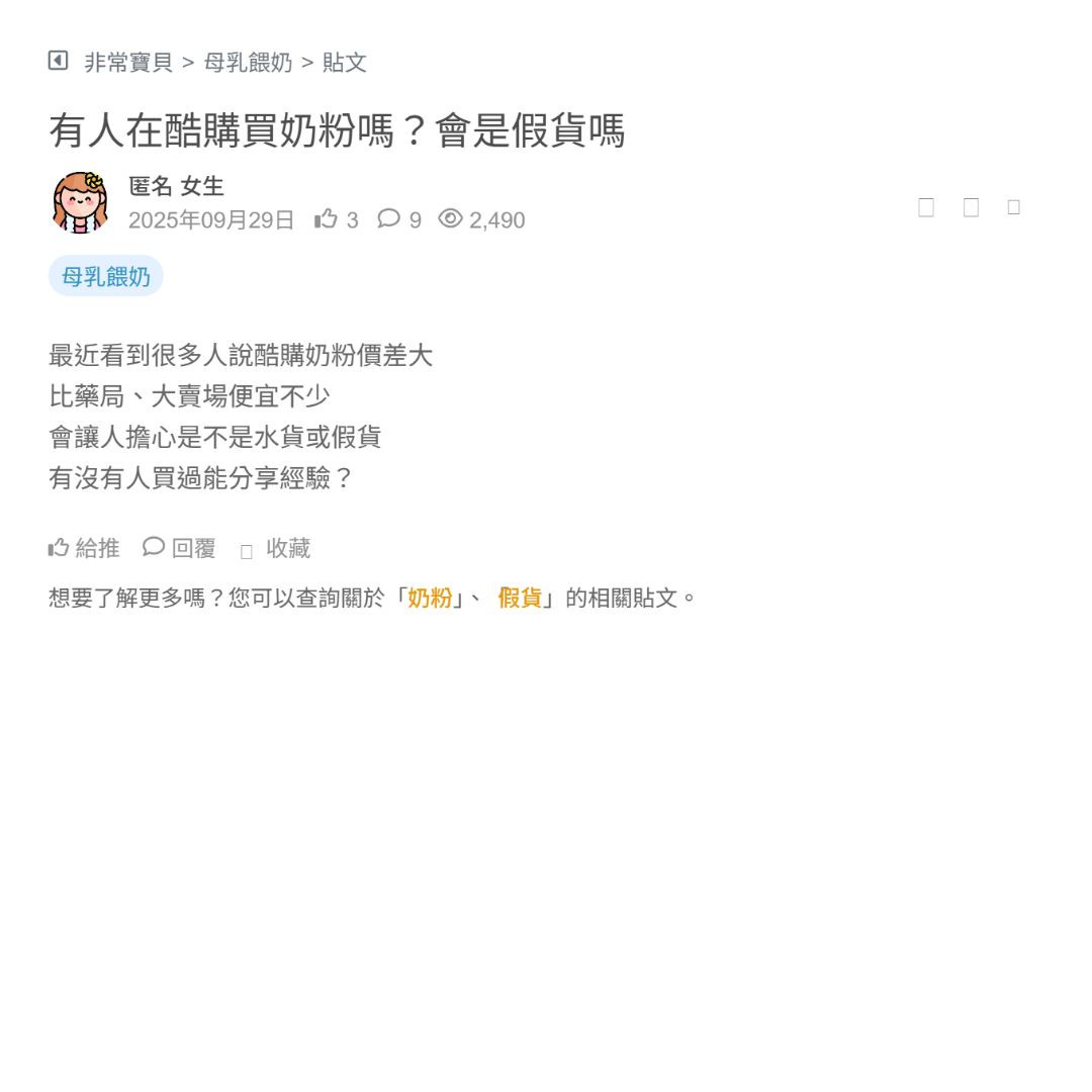 酷澎賣的嬰兒奶粉價格也太便宜!到底是真貨還是假貨?請問有人買過嗎,品質好嗎?超怕買到假貨 看更多