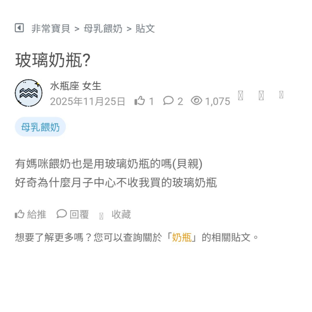好奇為什麼月子中心不收我買的玻璃奶瓶