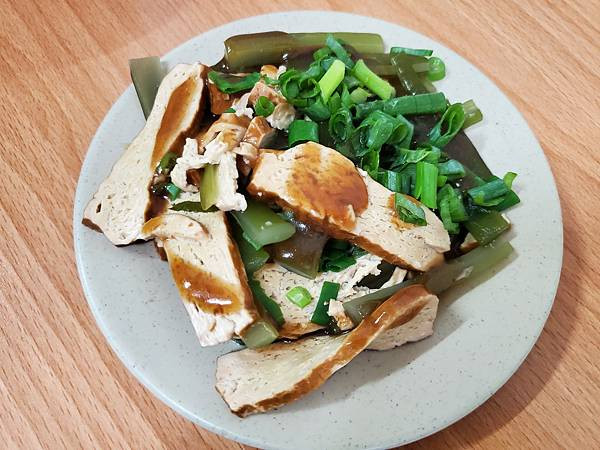 老王點了店家招牌綜合粿仔(湯)、油麵(乾)、豆干+海帶