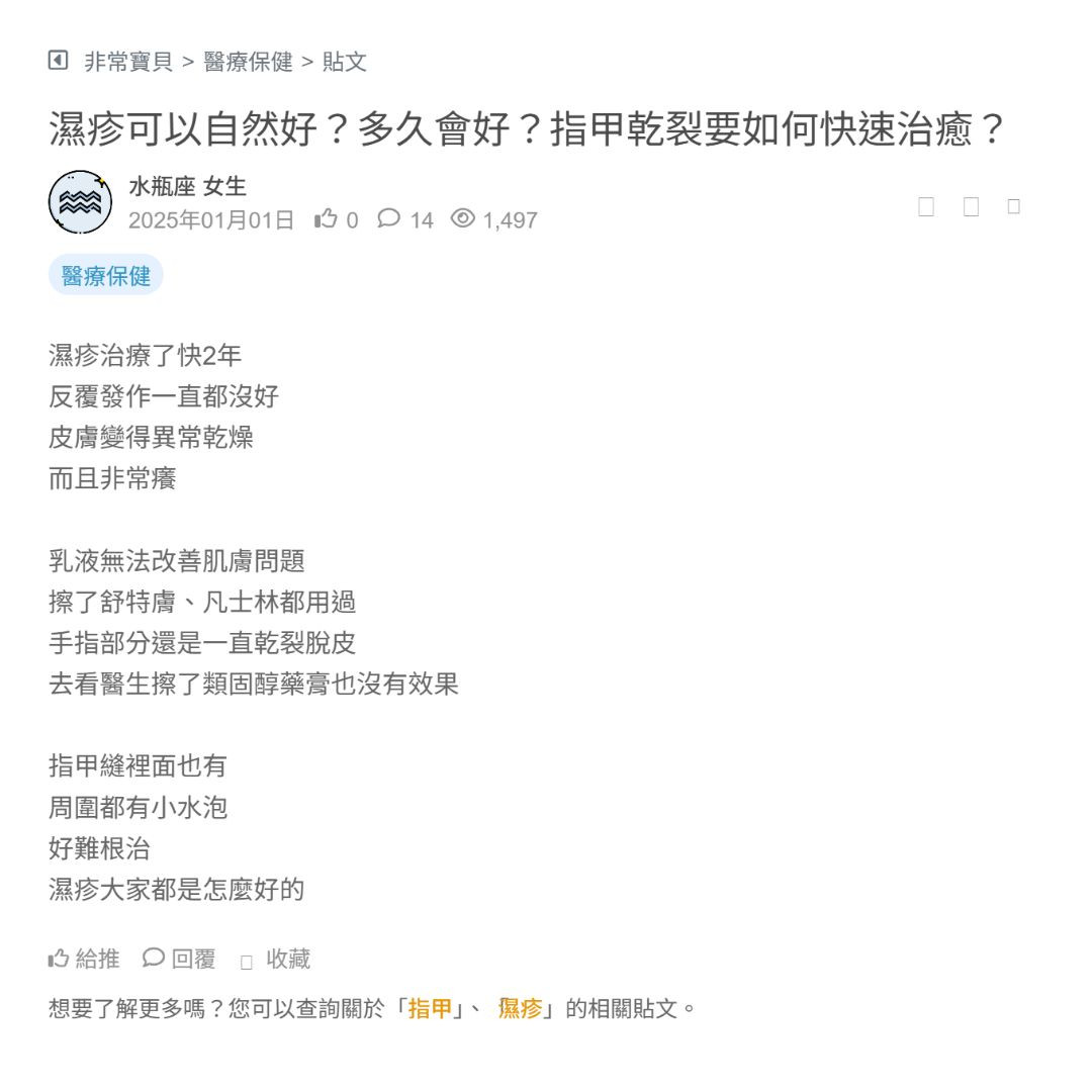 濕疹可以自然好?多久會好?指甲乾裂要如何快速治癒?