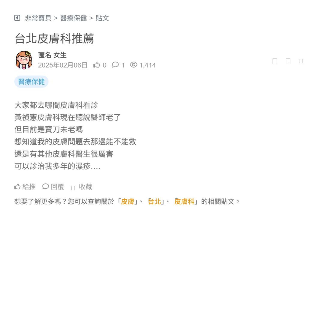 黃禎憲皮膚科現在聽說醫師老了