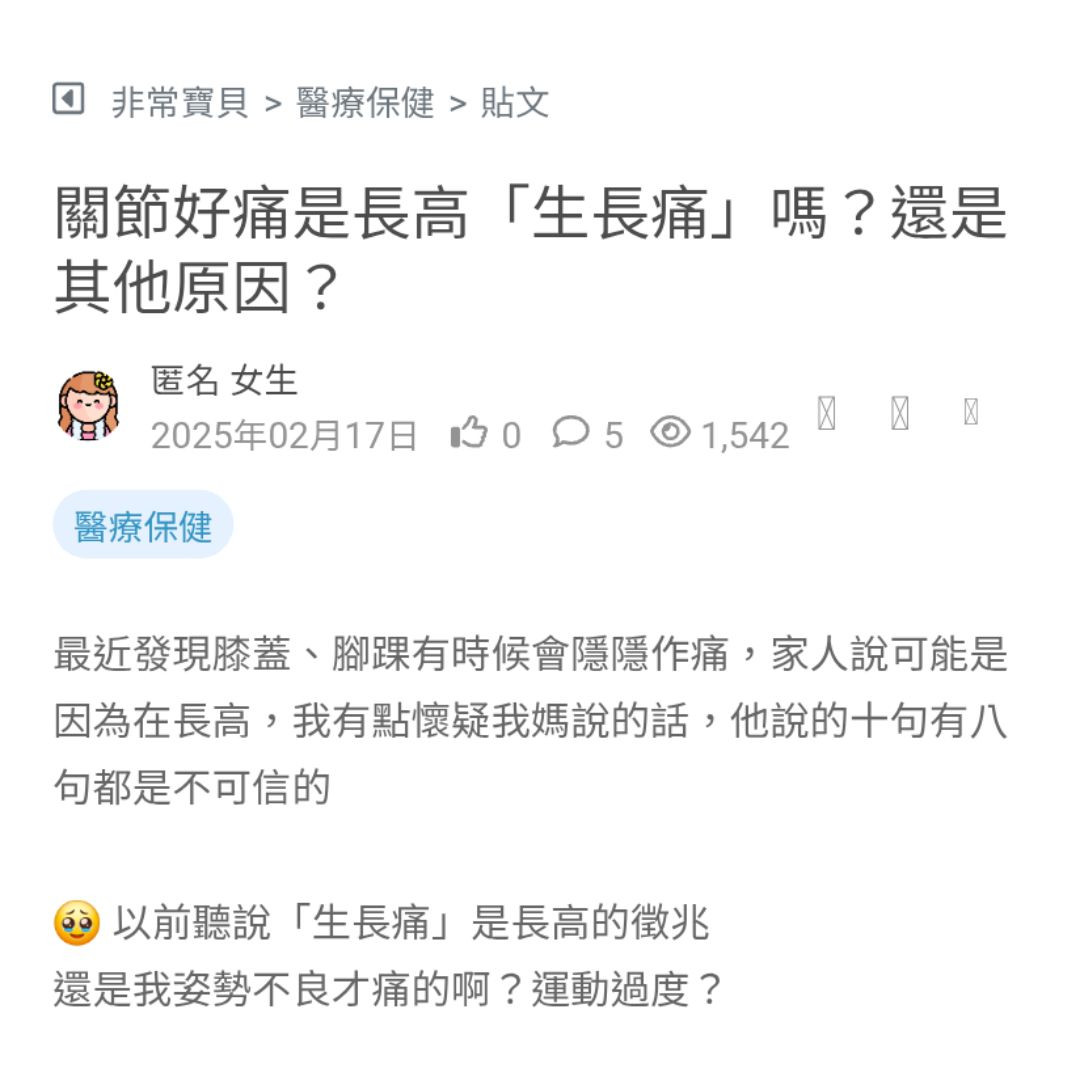 我國中時也常關節痛,後來長高了8公分🤣