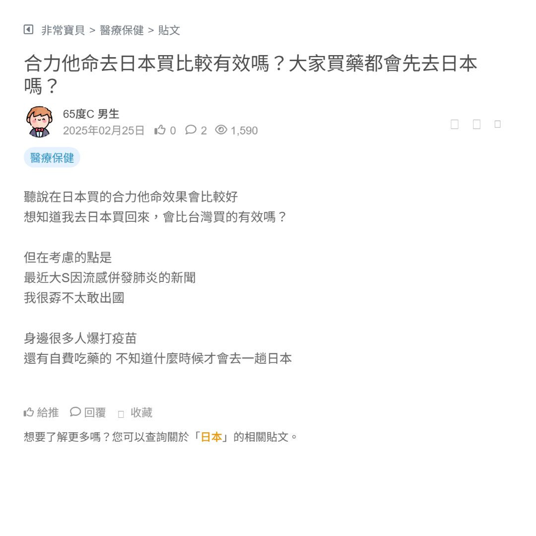 合力他命去日本買比較有效嗎?大家買藥都會先去日本嗎?