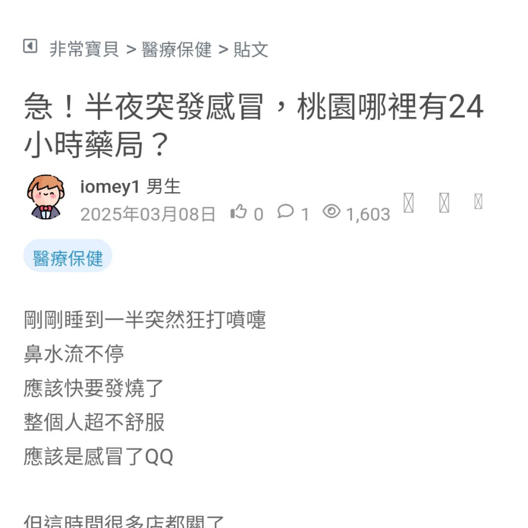 急!半夜突發感冒,桃園哪裡有24小時藥局?