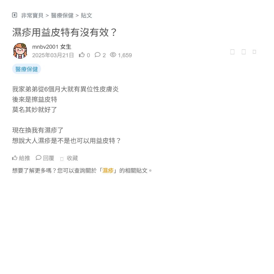 想說大人濕疹是不是也可以用益皮特?