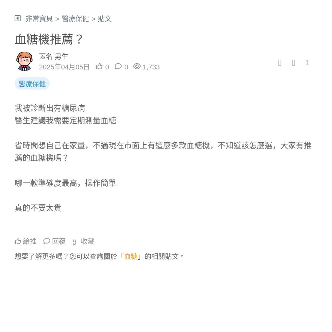 省時間想自己在家量,不過現在市面上有這麼多款血糖機,不知道該怎麼選,大家有推薦的血糖機嗎?