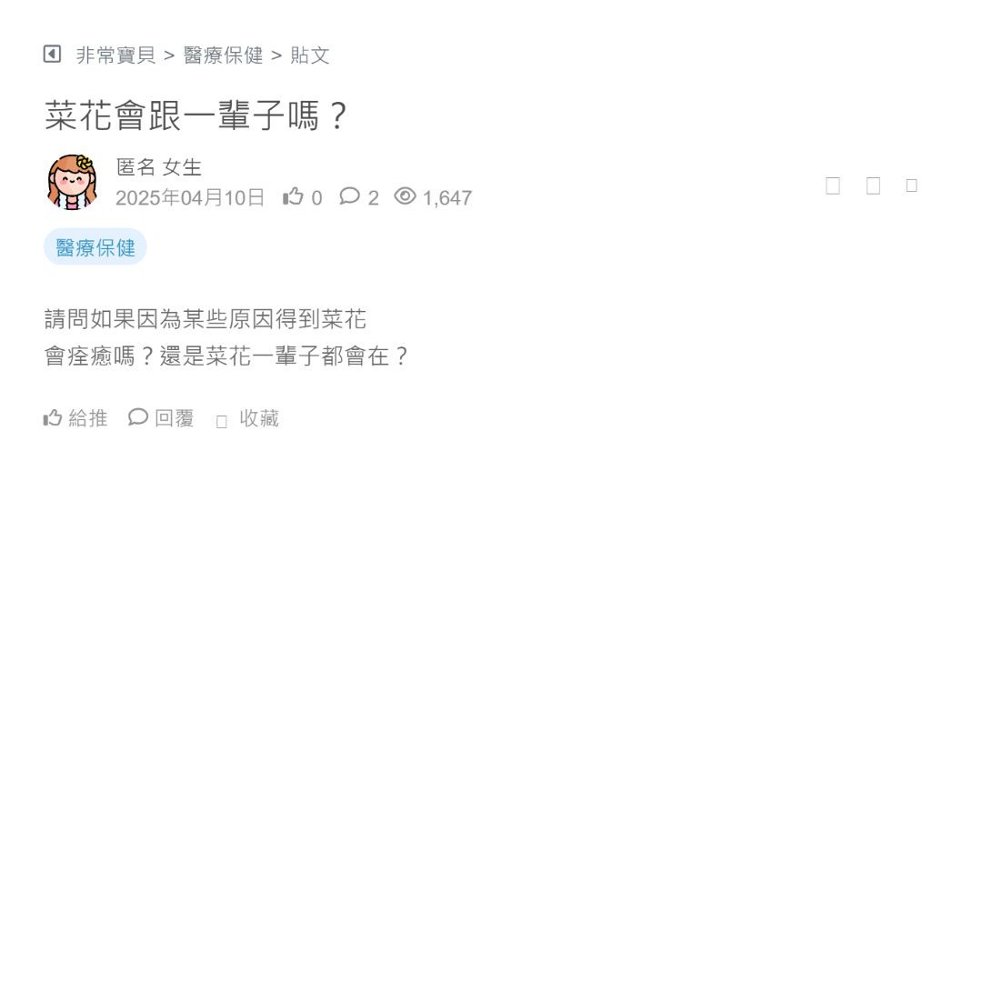 不知道是不是生完小孩後體質真的有變 我這一年私密處超級容易感染 常常一陣子搔癢、一陣子分泌物變多 每次去看婦科,醫師都是先開藥膏或塞劑 當下是會好一點 但又很容易復發,真的煩到心很累 我自己平常也有盡量注意清潔、穿棉質內褲 洗澡不亂用太香的清潔產品 但還是會反覆來 搞得我現在只要感覺到一點癢就開始緊張 想問問... 看更多