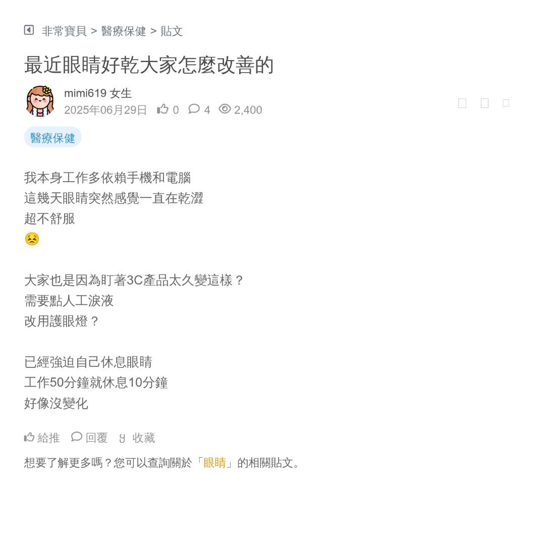 眼睛乾我覺得可以人工淚液+1
