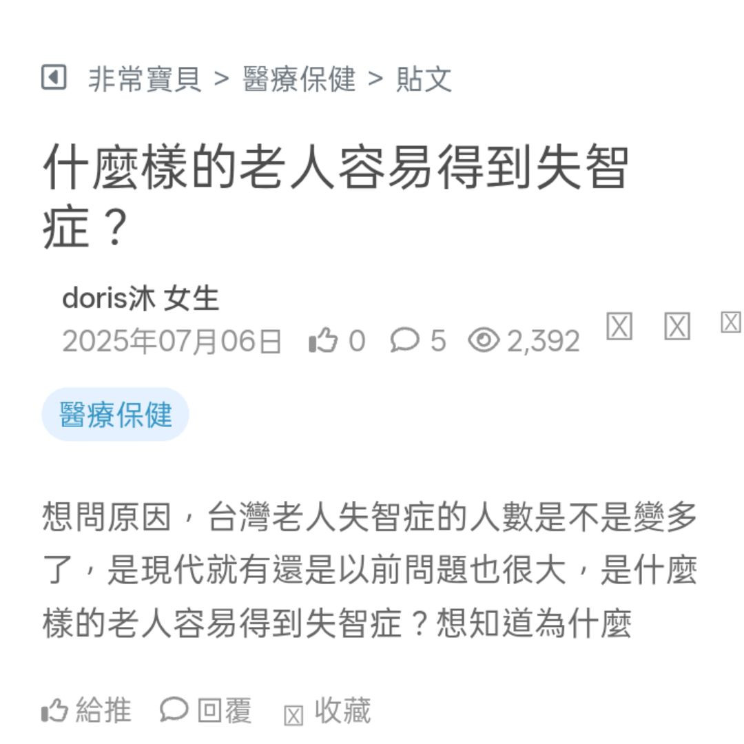想問原因,台灣老人失智症的人數是不是變多了,是現代就有還是以前問題也很大,是什麼樣的老人容易得到失智症?想知道為什麼