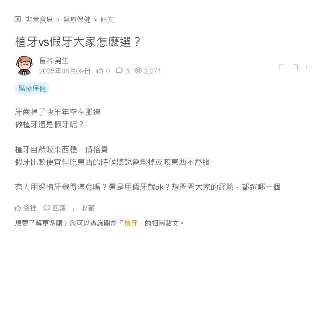 有人用過植牙覺得滿意嗎?還是用假牙就ok?想問問大家的經驗,都選哪一個