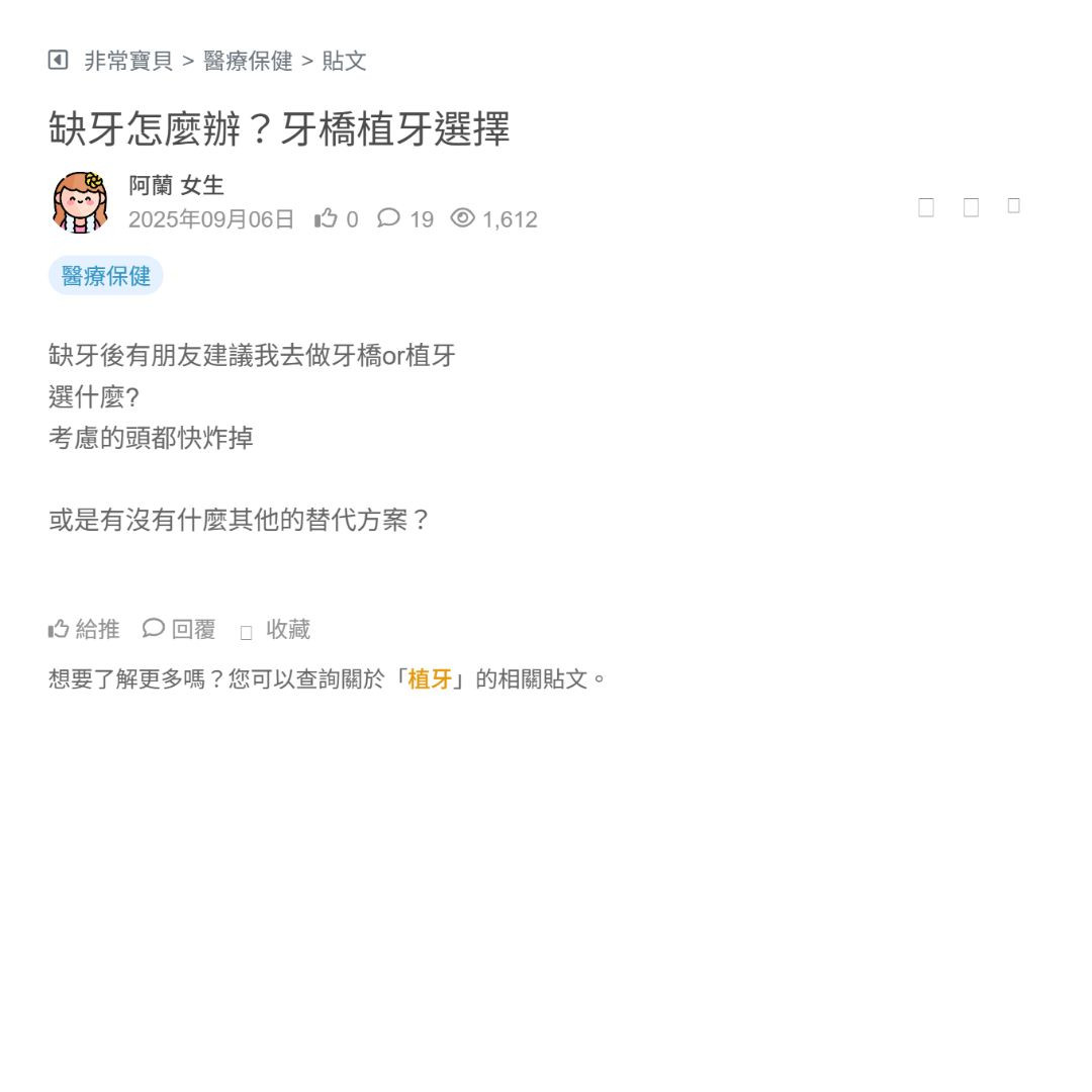 植牙、牙橋我都有做,植牙也是有壽命的,給參考