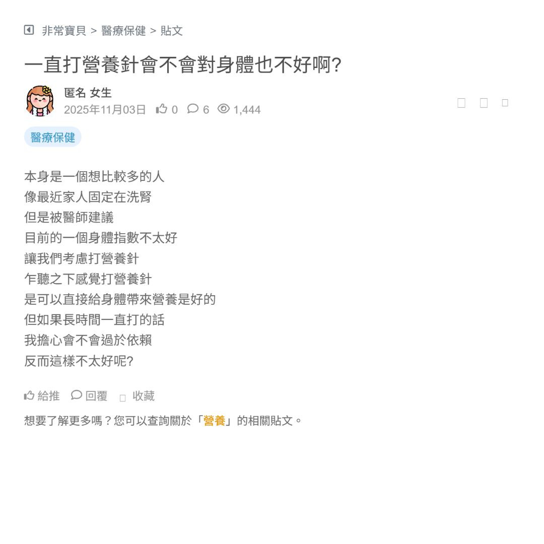 有沒有家人洗腎後胃口也變得很差? 我家人最近就是這樣 明明知道要吃得夠才有體力 但每天看他吃兩口就放著,整個人越來越瘦 精神也不好,當家屬真的很擔心 我現在比較困惑的是 如果胃口一直不好 到底還有什麼方式可以補營養? 有些人說要多喝高蛋白飲品 有人說能量飲、胺基酸、營養針也算一種補充 但我真的搞不清楚哪些適合... 看更多