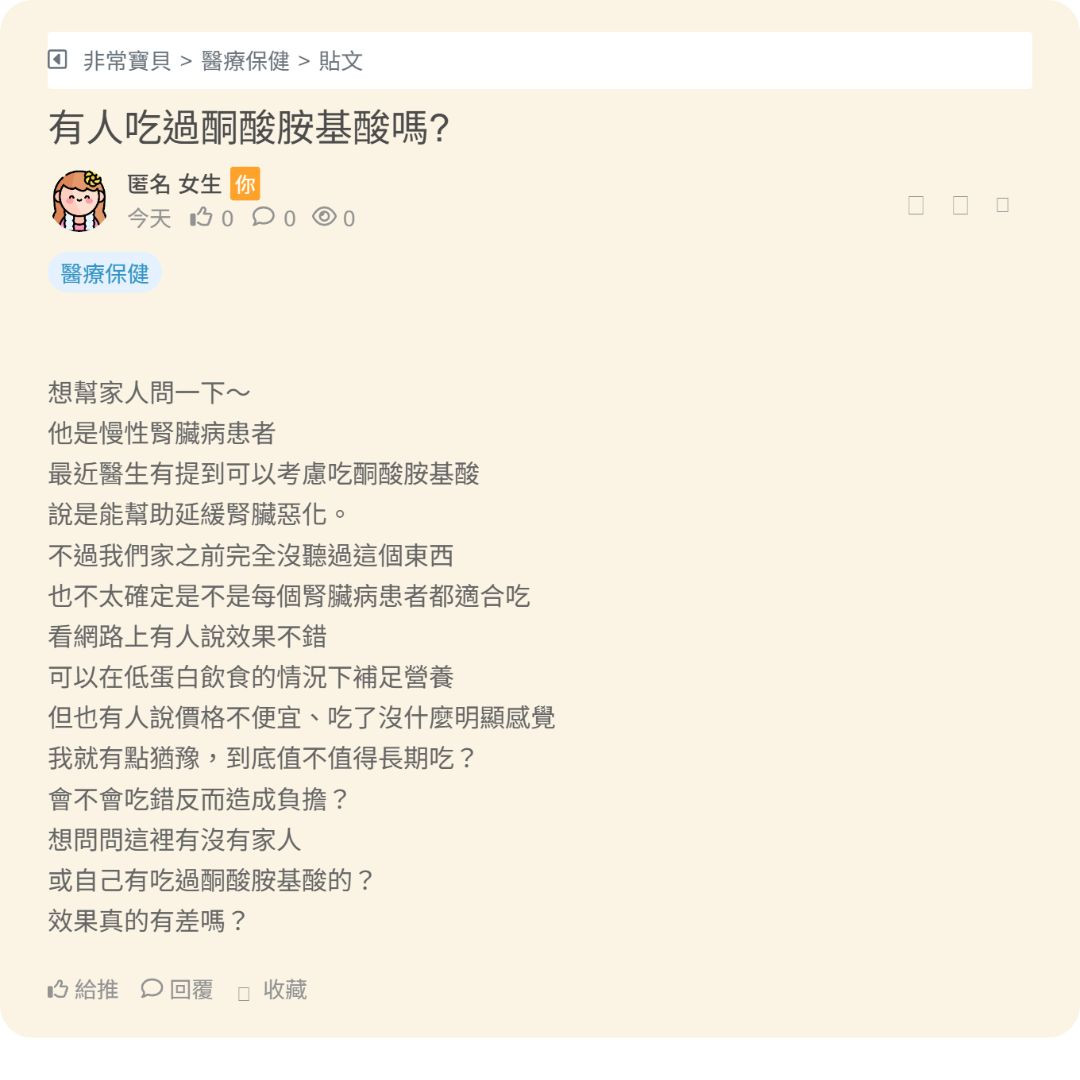 最近醫生有提到可以考慮吃酮酸胺基酸