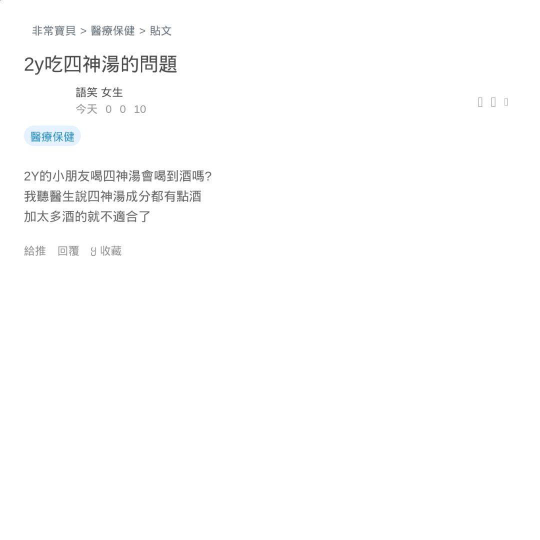 替老婆詢問 如果目前沒有哺乳 但是我媽做的四神湯 有不小心加酒 會怎麼樣嗎 看更多