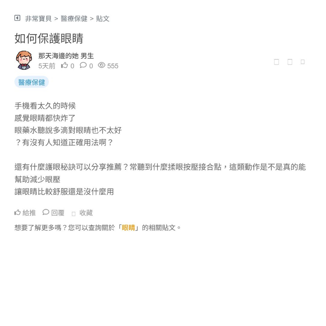 我本身工作多依賴手機和電腦 這幾天眼睛突然感覺一直在乾澀 超不舒服 😣 大家也是因為盯著3C產品太久變這樣? 需要點人工淚液 改用護眼燈? 已經強迫自己休息眼睛 工作50分鐘就休息10分鐘 好像沒變化 看更多