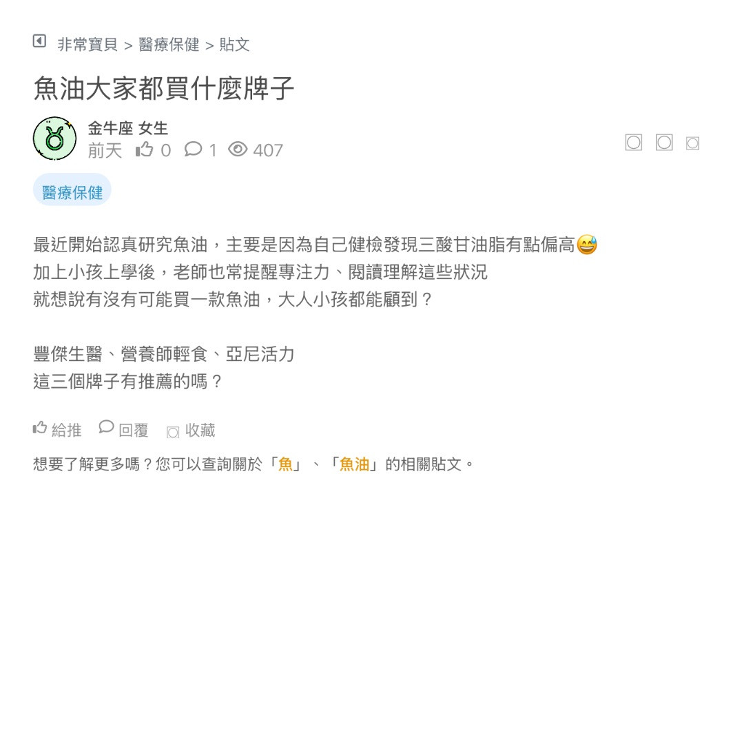 最近開始認真研究魚油,主要是因為自己健檢發現三酸甘油脂有點偏高😅