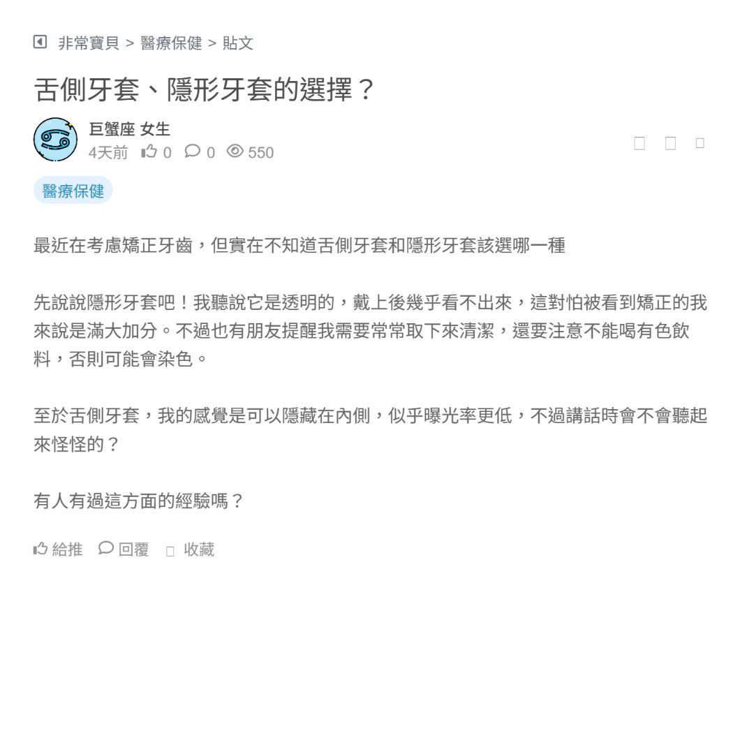 至於舌側牙套,我的感覺是可以隱藏在內側,似乎曝光率更低,不過講話時會不會聽起來怪怪的?