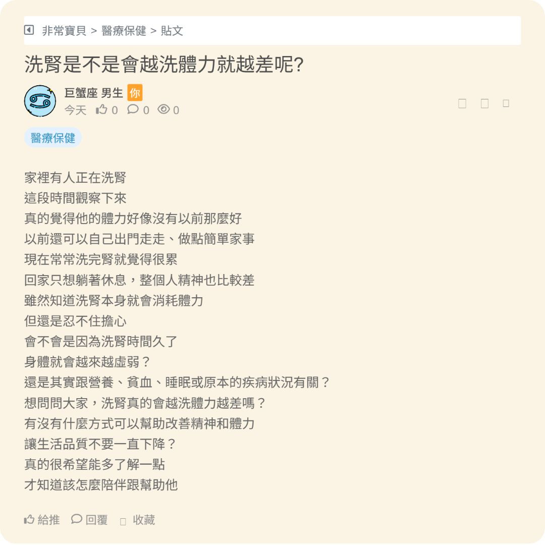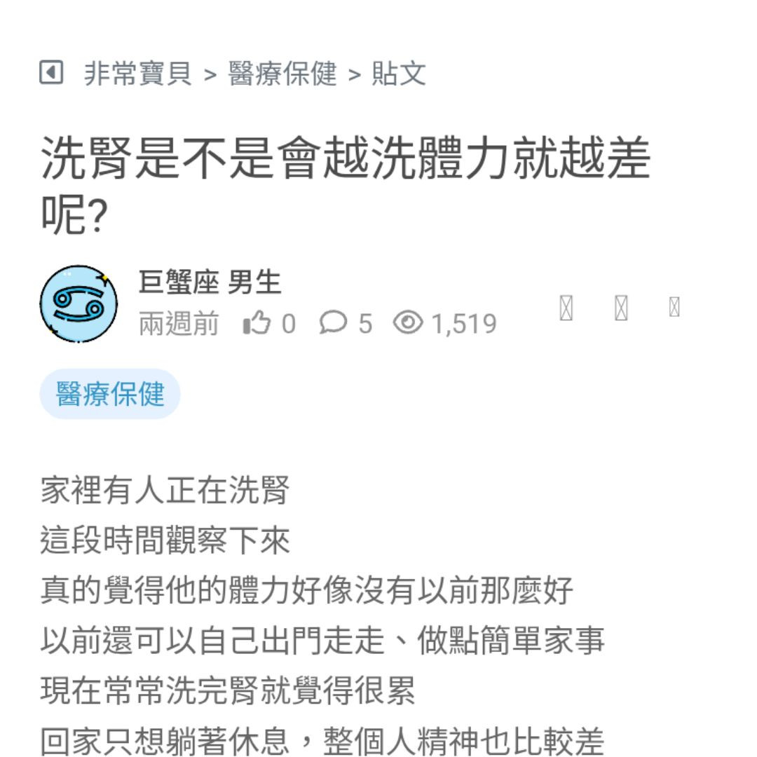 想問問大家,洗腎真的會越洗體力越差嗎?