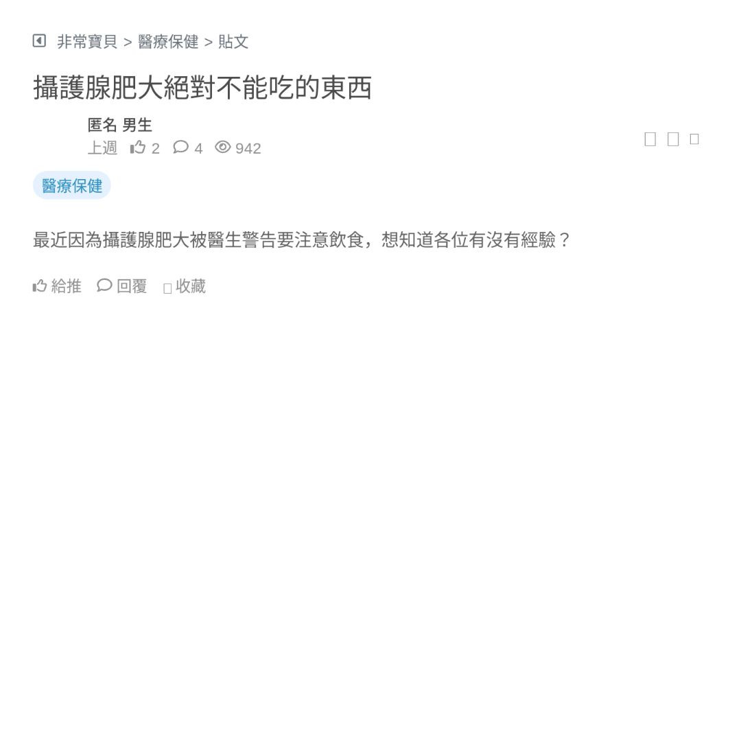 最近因為攝護腺肥大被醫生警告要注意飲食,想知道各位有沒有經驗?