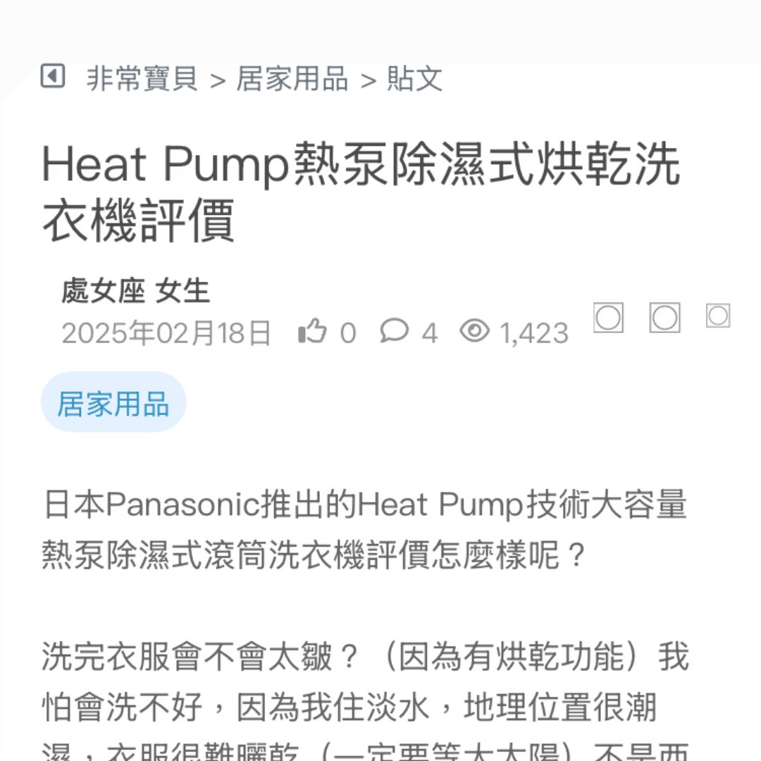 最近考慮換洗衣機 有人有買過國際牌 Panasonic Heat Pump 這台熱泵除濕式烘乾洗衣機嗎? 這台真的很好用嗎? 烘衣服感覺很厲害 但 實際會不會縮水變形啊🫠 怕只是廣告 買了會虧 不知效果怎麼樣 求分享使用心得! 看更多